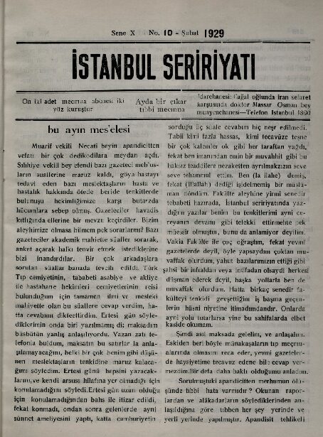 Türk Tababeti Akliye ve Asabiye Cemiyeti, Mazhar Osman, Uzman, tıbbı adlî, Türk Tıp Cemiyeti, Kenan Hasan, Birgen, Ürotropin, ansefalit, vaka, Tokat Askeri Hastanesi, akliye ve asabiye mütehassısı, Ömer Lütfi, müşahede, Sanarthrit, amudu fıkari, ecsamı fıkariyel, gudruf, tekellüs, Mehmet Lütfi, Anüri, kateterism, Besim Kemal, Duodenum, karha, 1928, Fransız Cerrahi Kongresi, Okinczye, Ahmet Fahri, Arel, Psikonevroz, ihatavî teşhis, Paris Tıp Fakültesi, profesör, Maxime, Laignel, Lavastine, Gülhane, muavin, Ali Rasim, Adasal