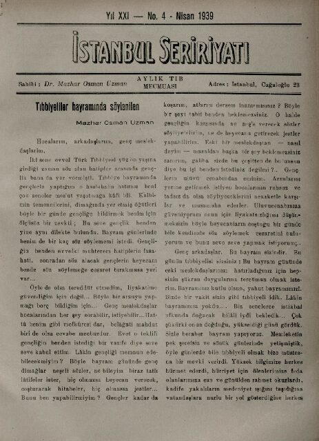 İstanbul Seririyatı-Sene 21-No:4-1939 (Paramedikal)